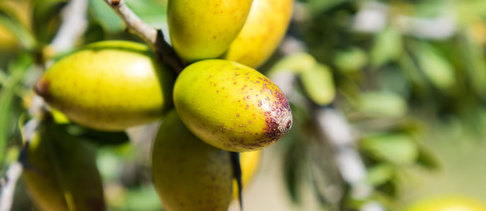 サハラ砂漠の北西部モロッコのみに生息するアルガン樹の実からとれるアルガンオイル。